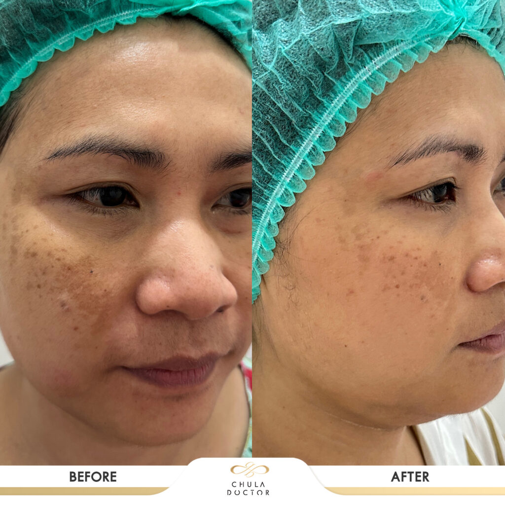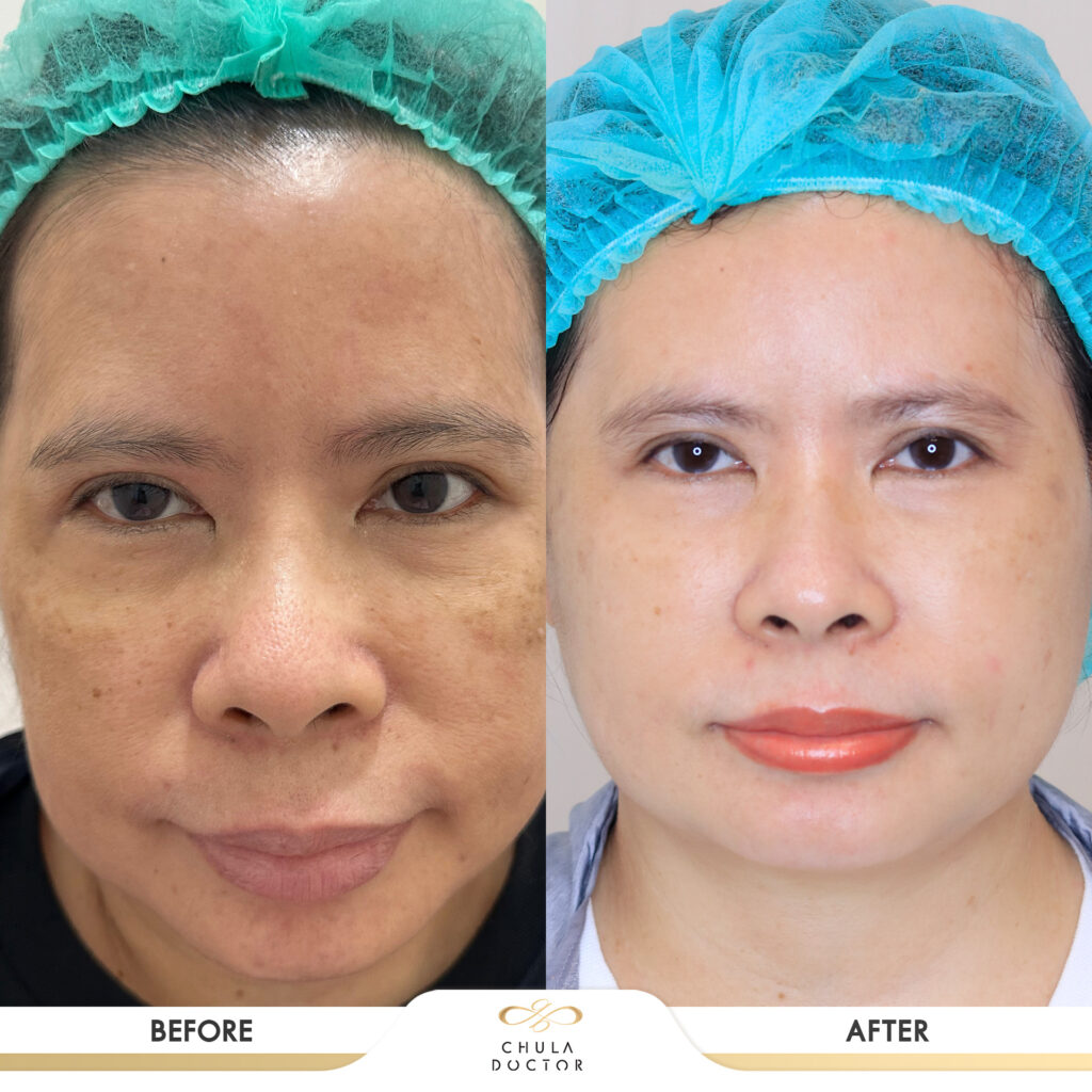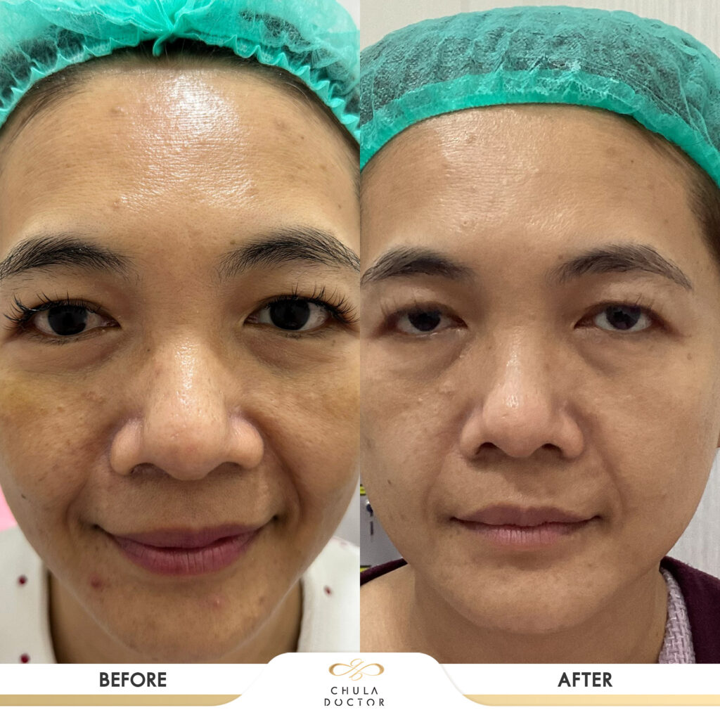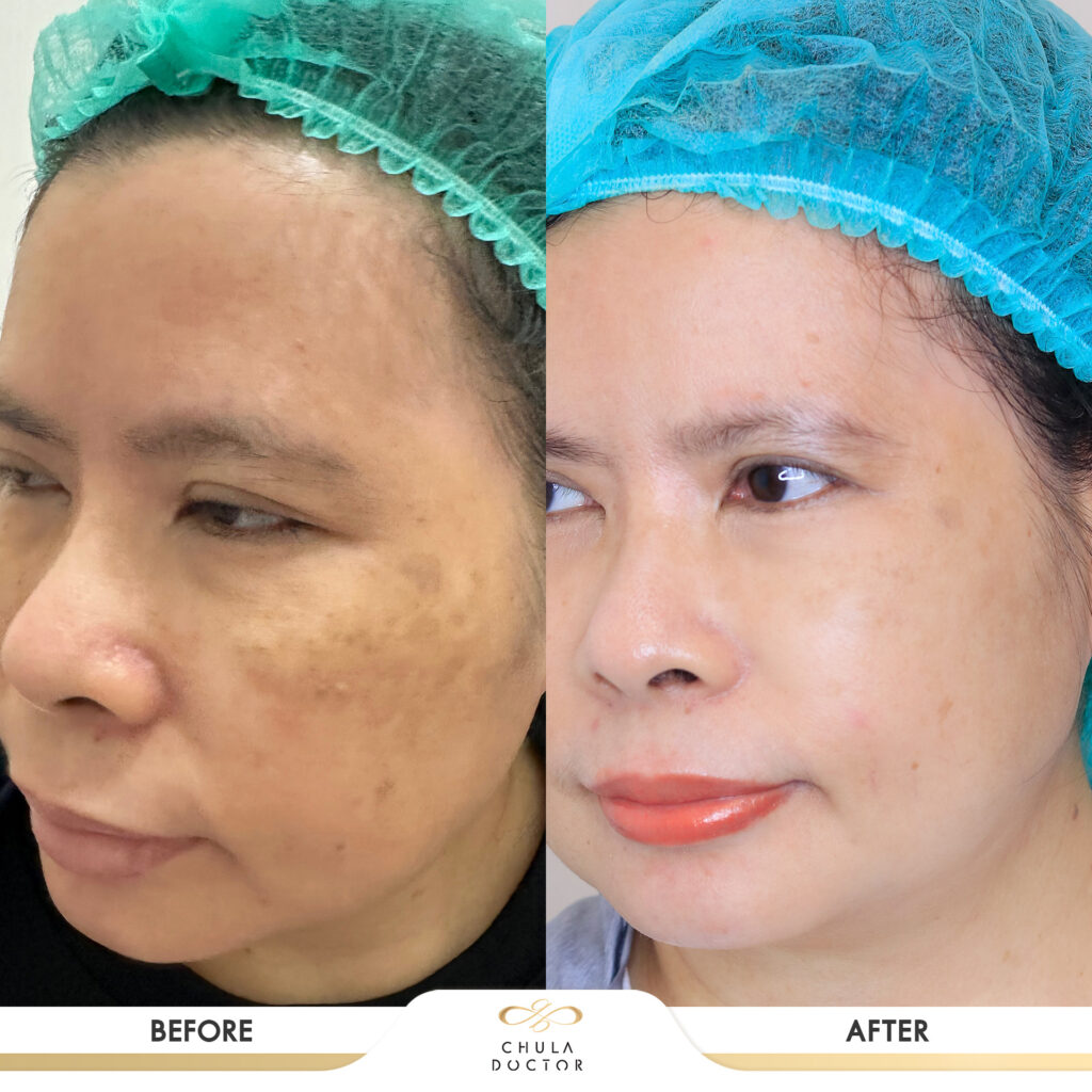 คุณทัย อายุ 42 ปี เผชิญกับปัญหาฝ้าจากแสงแดดและอายุ ฝ้าขึ้นที่แก้มทั้งสองข้างจนเสียความมั่นใจและถูกบูลลี่บ่อยครั้ง