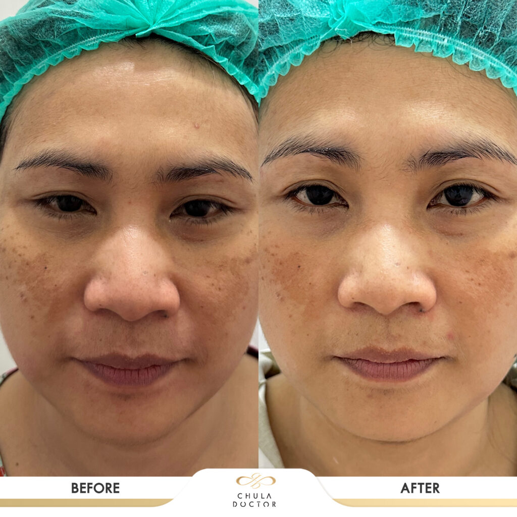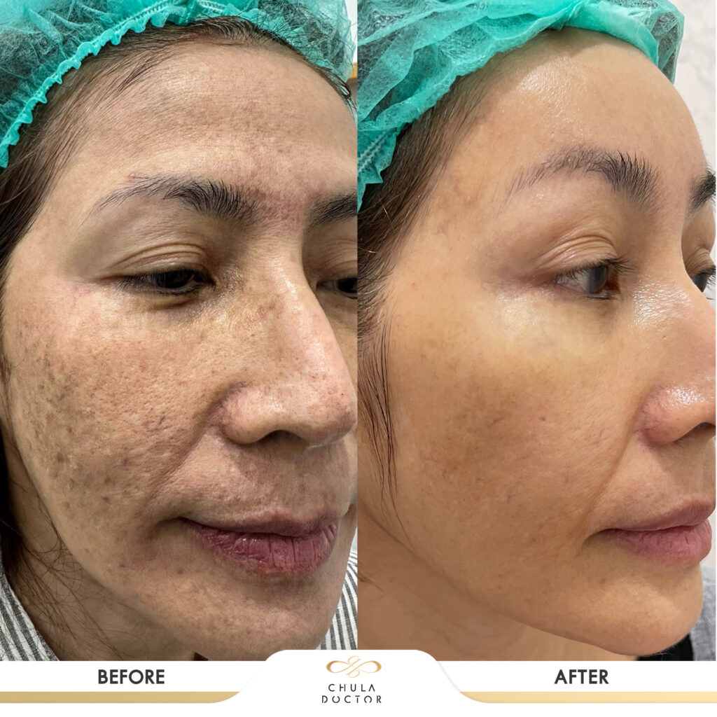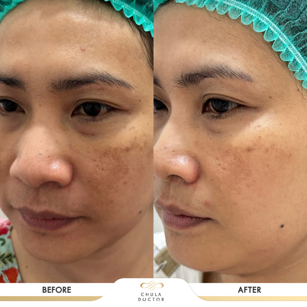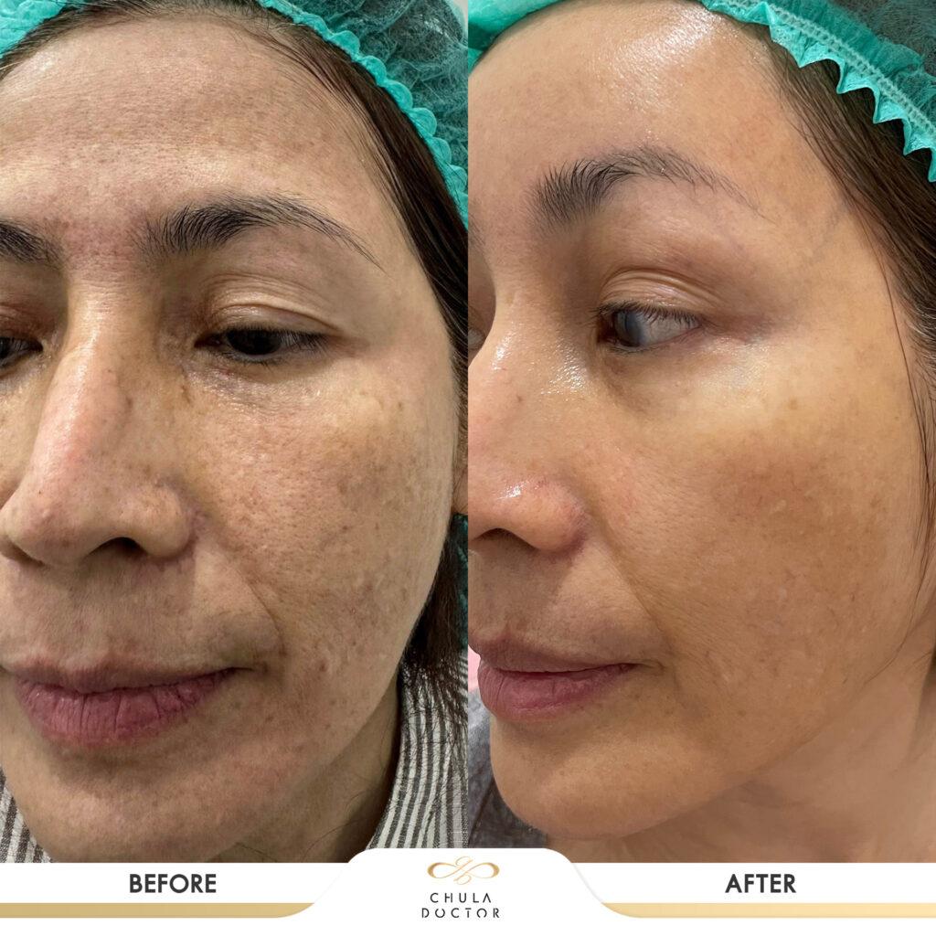 คุณทัย อายุ 42 ปี เผชิญกับปัญหาฝ้าจากแสงแดดและอายุ ฝ้าขึ้นที่แก้มทั้งสองข้างจนเสียความมั่นใจและถูกบูลลี่บ่อยครั้ง