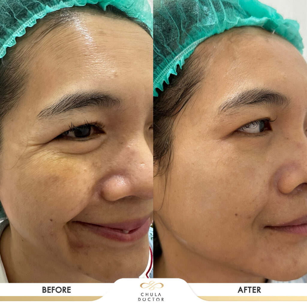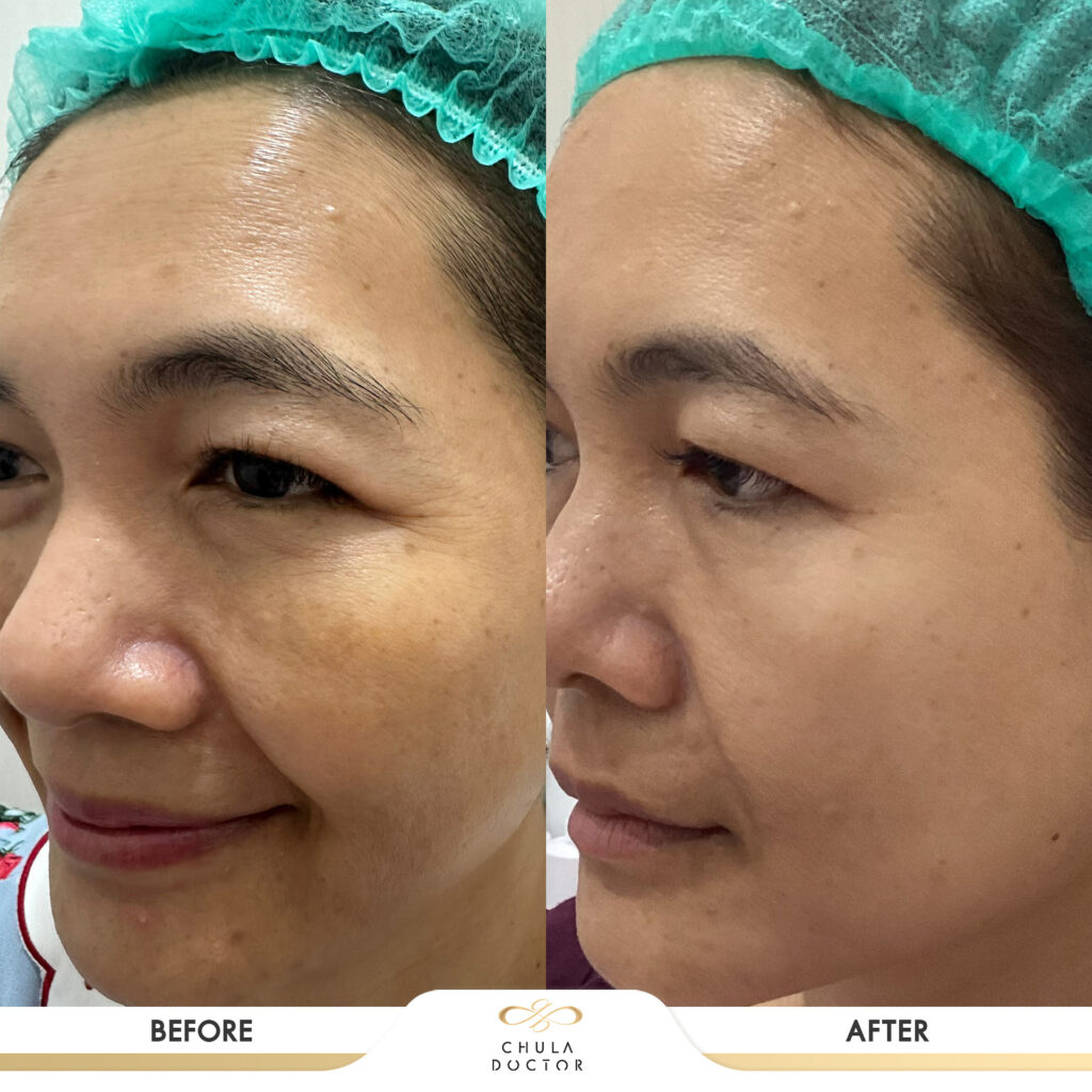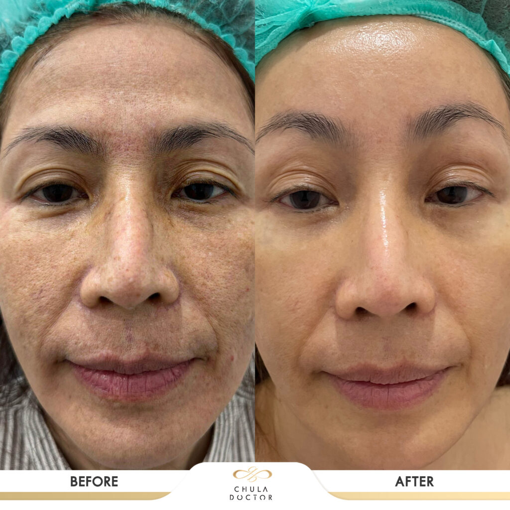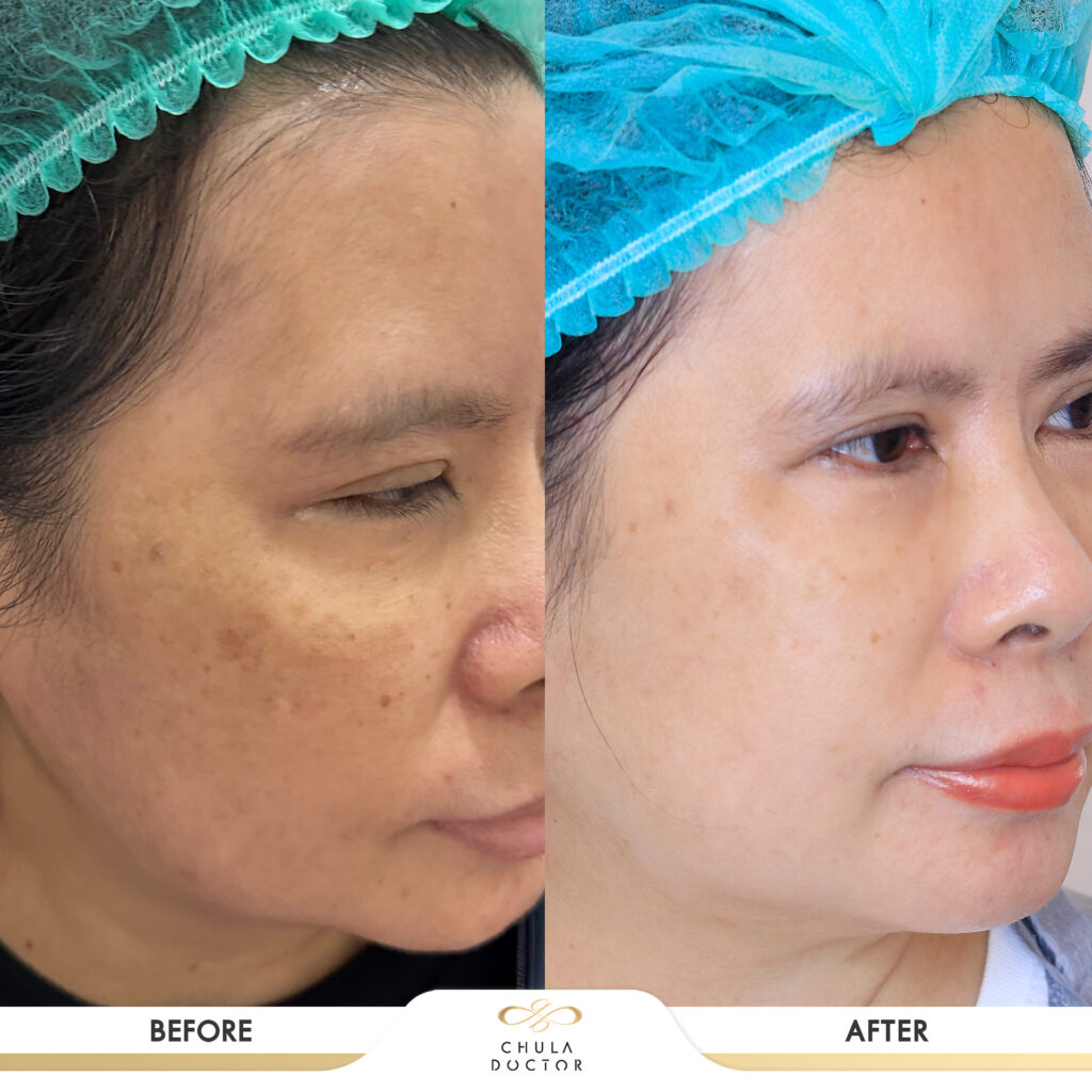 คุณทัย อายุ 42 ปี เผชิญกับปัญหาฝ้าจากแสงแดดและอายุ ฝ้าขึ้นที่แก้มทั้งสองข้างจนเสียความมั่นใจและถูกบูลลี่บ่อยครั้ง